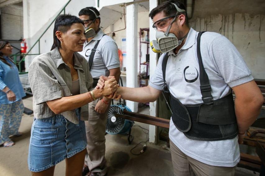 La intendenta de Quilmes, Mayra Mendoza, recorrió este jueves junto a la directora ejecutiva del Organismo Provincial de Contrataciones, Victoria Anadón, la empresa Zenplas Madera Plástica, ubicada en Luis María Campos 171, en Bernal Oeste, para conocer los procesos productivos de la planta y planificar acciones conjuntas.