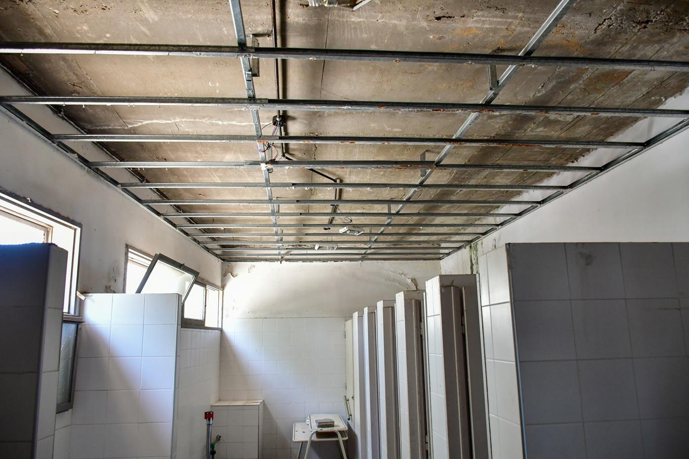 Pablo González -jefe de área y profesor de la escuela- explica algunas de las reparaciones concretadas. “Amplían un techo para continuar una pendiente. Así, evitan el problema anterior: la caída del agua sobre una losa, aparición de grietas, desprendimiento del cielorraso y el riesgo de tocar los caños de electricidad”.