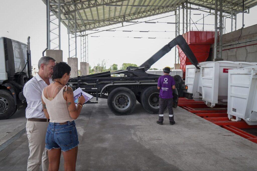 En el primer tramo del recorrido, Mayra destacó, junto al secretario de Ambiente y Girsu, Roberto Gaudio, el funcionamiento del sistema de transferencia en el Ecoparque Quilmes, que empezó a operar en agosto del 2024, solamente con carga superior, y que en enero se pudo optimizar con la incorporación de tres tolvas.