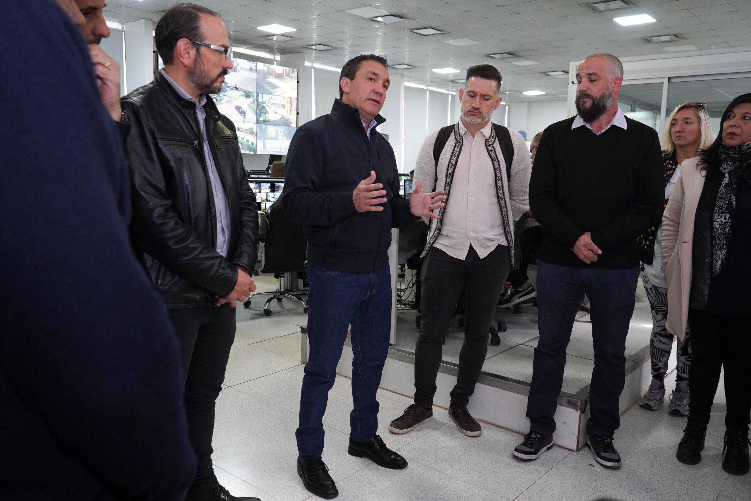 La máxima autoridad distrital -Andrés Watson- conversó con inspectores, inspectoras y directivos provenientes de diferentes instituciones del partido sobre inquietudes vinculadas a la protección ciudadana, la mañana del viernes en el Centro de Monitoreo Municipal -Av. Novak esquina Bonn-.
