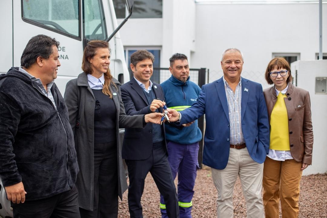 Asimismo, sobre el escenario, el gobernador bonaerense anunció la construcción de nuevas viviendas en Sierra de la Ventana, e hizo entrega de un camión regador destinado a dicha localidad, que fue recibido por la delegada local, Viviana Montibeller, junto a su equipo. La nueva unidad fue adquirida por el municipio de Tornquist a través del programa Provincia Leasing.