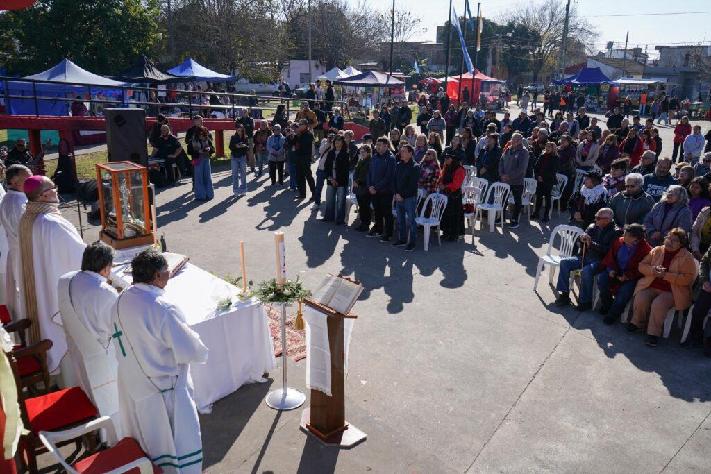 El intendente Andrés Watson compartió junto a fieles, vecinos y vecinas la eucaristía central en el emblemático espacio verde de Villa del Plata, ubicado en calle Beruti esquina Tejedor.
