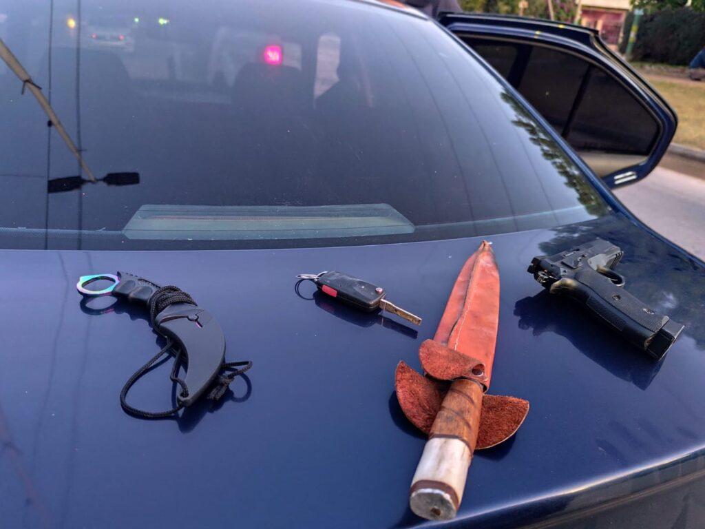 Cuando notaron la presencia de la policía, los sujetos intentaron fugarse, pero fueron interceptados en Av. Novak esquina Humahuaca. Dentro del vehículo, los oficiales encontraron una cuchilla, una navaja y una réplica de arma de fuego.