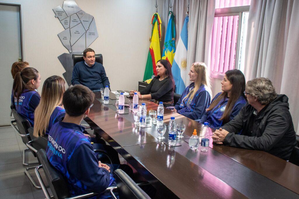 Jóvenes deportistas locales soñaron con dejar su huella en el torneo multicontinental. El jefe comunal -Andrés Watson- dialogó con la delegación de taekwondistas sobre el desafío que fijó como fecha de inicio el 23 de julio.