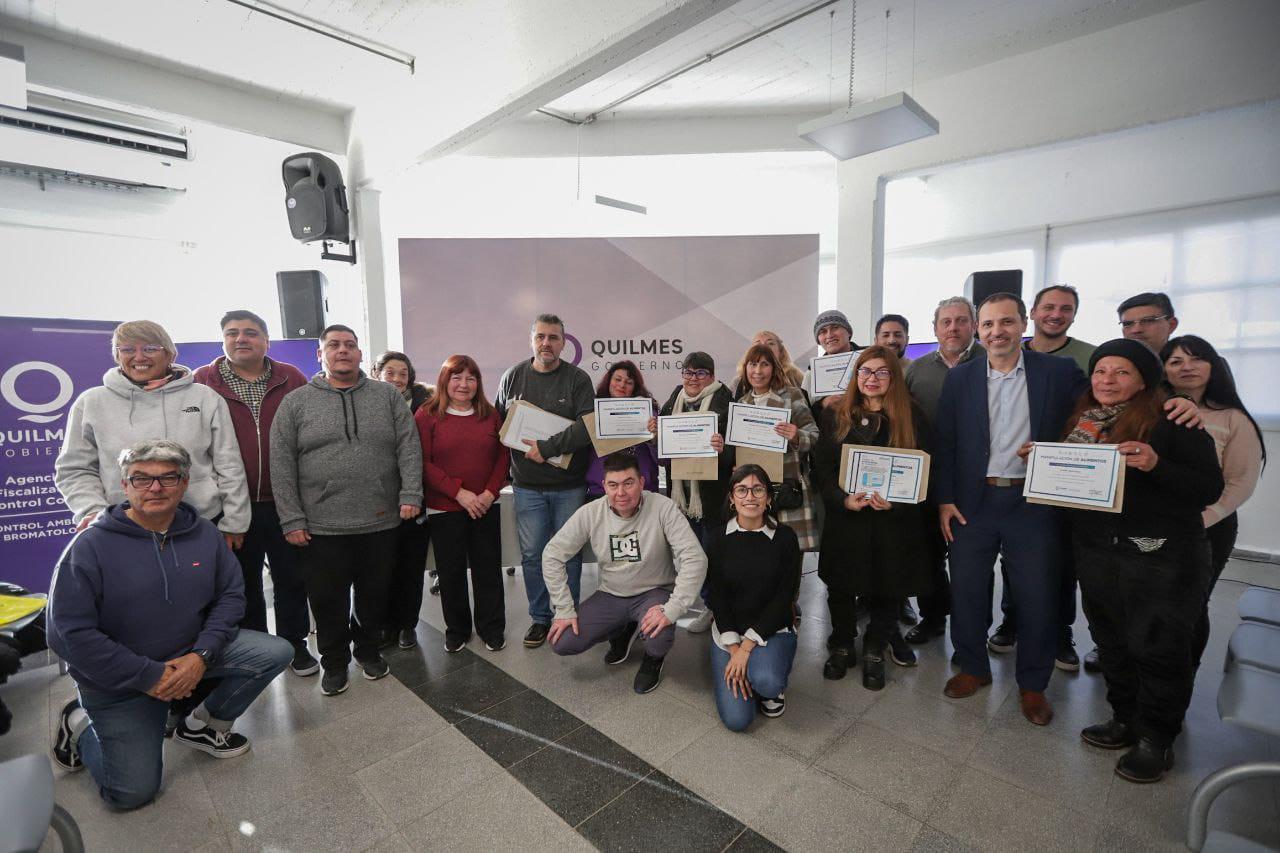 El Municipio de Quilmes entregó este jueves más de 30 carnets de Manipulación Segura de Alimentos a emprendedores y emprendedoras del barrio La Paz, que realizaron el curso dictado por la Comuna, en un acto que se desarrolló en el anexo municipal de San Francisco Solano, ubicado en calles 897 y 843.
