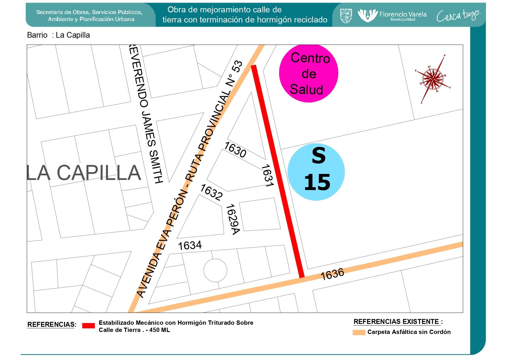 Con el fin de optimizar la circulación en la región, el Municipio planifica el martes 22 de julio iniciar los trabajos de estabilizado con terminación de hormigón reciclado en calle 1631, entre 1636 y Ruta Provincial Nº53.