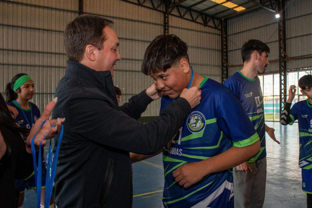 El titular del Ejecutivo local -Andrés Watson- entregó preseas y trofeos a los victoriosos atletas comunales de la competencia Apertura 2025, disputada a mediados de julio en «La Patriada», el martes por la tarde en el Polideportivo Municipal “Néstor Kirchner”, ubicado sobre calle Francisco Gurruchaga.