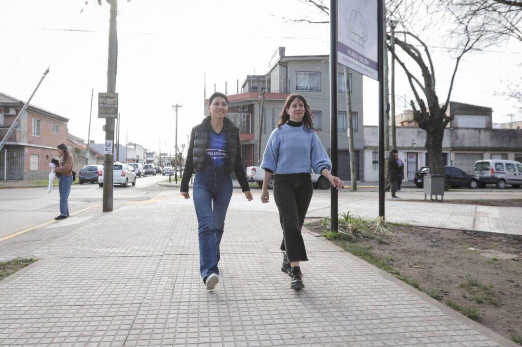 La intendenta de Quilmes, Mayra Mendoza, en compañía de la secretaria de Desarrollo Urbano y Obra Pública y candidata a 1ª Concejala por Fuerza Patria local, Ceci Soler, recorrieron el progreso de la obra de refacción integral de la plaza Domingo Sarmiento, popularmente conocida como plaza Belén, ubicada en la manzana de Zeballos, Smith, Alem y Viejo Bueno, en Bernal Oeste, junto a integrantes de 13 escuelas públicas de la zona.
