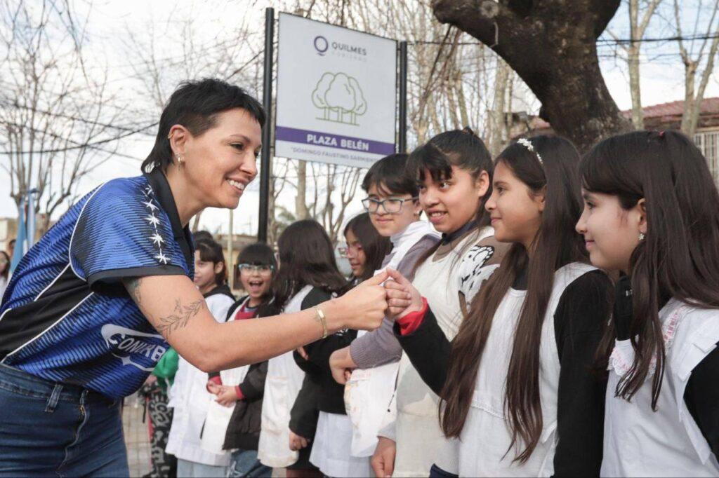 “Recorrimos junto a los chicos, chicas y docentes de las escuelas de la zona la obra de la plaza Belén, un espacio que va a ser punto de encuentro, juego y disfrute para toda la comunidad. Las plazas son el corazón de cada barrio, lugares que fortalecen la vida en común y que nos recuerdan que la ciudad también se construye con momentos compartidos. Seguimos sumando espacios para que nuestros vecinos y vecinas vivan mejor, con dignidad y futuro”, expresó Mayra, acompañada por funcionarios del Ejecutivo Municipal, concejales, y candidatos a concejales y consejeros escolares de Fuerza Patria Quilmes.