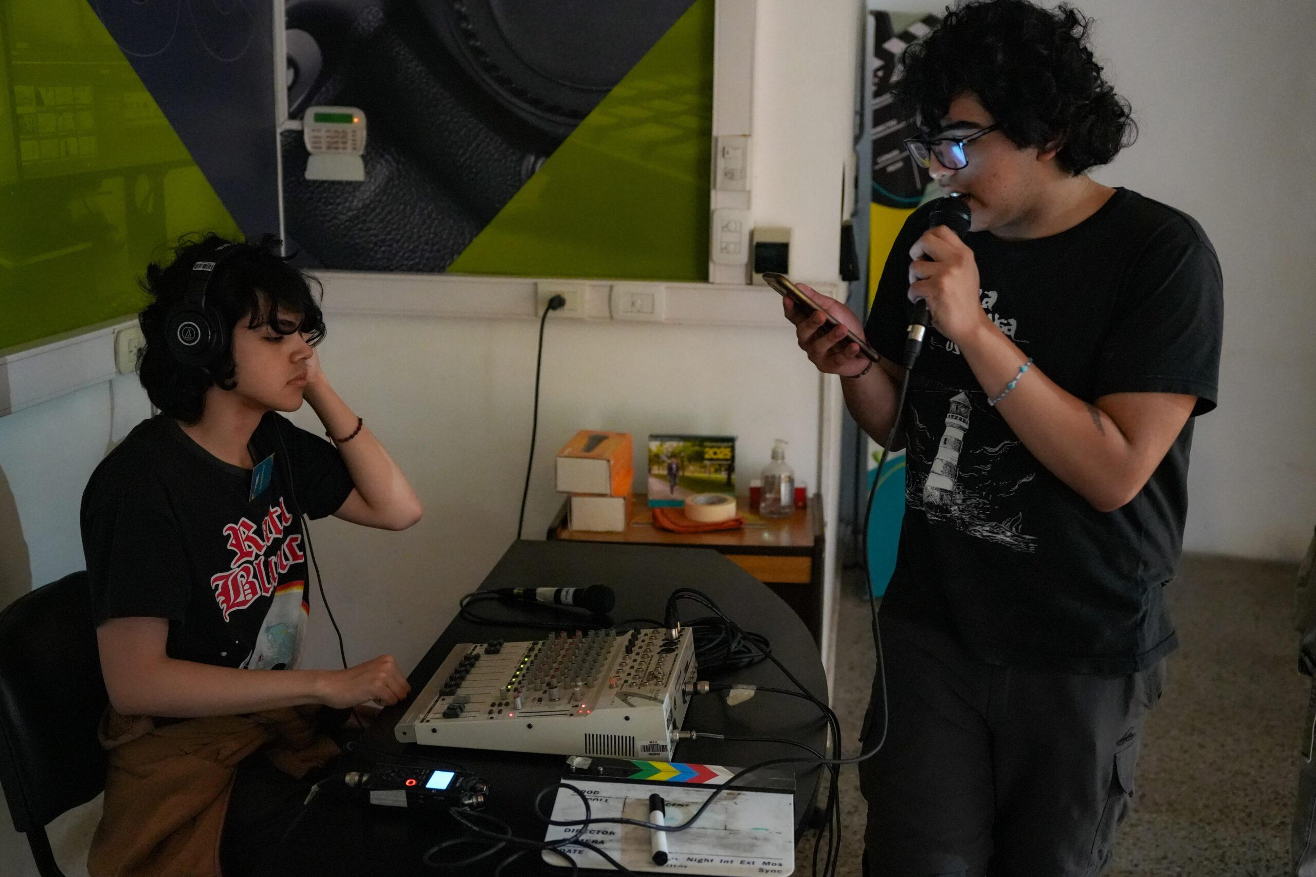 Estudiantes de 6to año de la Escuela Secundaria Nº61 de El Rocío protagonizaron las prácticas destinadas a la elaboración de un programa audiovisual en los estudios municipales del barrio Villa Susana el lunes por la mañana.
