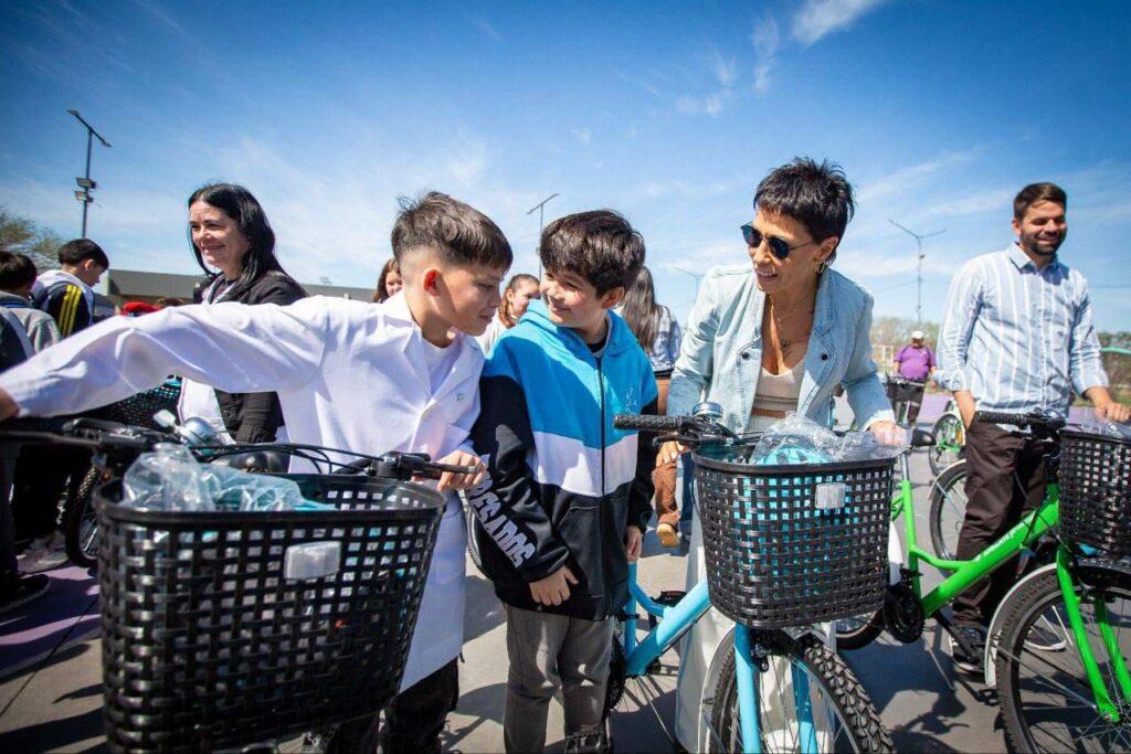 La intendenta de Quilmes, Mayra Mendoza, encabezó este lunes la entrega de bicicletas a estudiantes de escuelas primarias y secundarias del distrito, en el marco del programa provincial “Pedaleá la Provincia”, que tiene como objetivo fomentar este medio de transporte accesible, sostenible y saludable entre las juventudes bonaerenses.