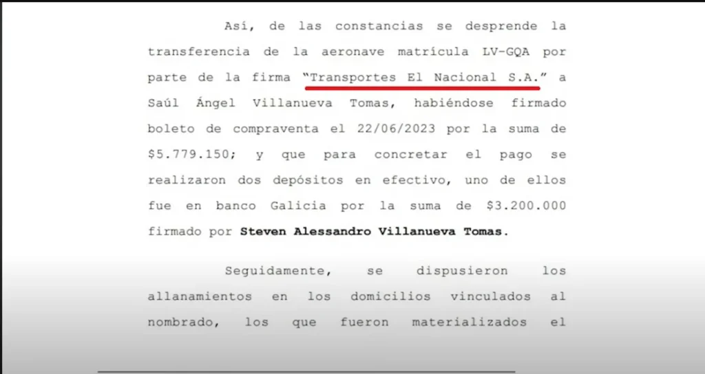 El Cessna 210 matrícula LV-GQA pertenecía a un narco peruano que tenía un boliche bailable en el barrio capitalino de Flores y había sido comprada en junio de 2023 por trece mil dólares, la décima parte de su valor real, a la empresa de transportes “El Nacional”, cuyos propietarios son Vidal Bada Vázquez y María Cecilia Roncero. Como se contó en nota de Data Clave, el matrimonio Bada Vázquez-Roncero se asoció en la Patagonia con el primo de Fred Machado y pareja de la diputada Lorena Villaverde, Claudio Cicarelli, para explotar una mina en Neuquén, Andacollo, bajo la firma Eco Friendly creada el 28 de julio de 2021 entre Bada Vázquez, Roncero y Cicarelli, tres meses después de la detención de Fred Machado. Cuando hace unos meses el vínculo de Cicarelli y Fred Machado empezó a ser público, Eco Friendly, la pareja de Lorena Villaverde se retiró de la sociedad que quedó en manos del matrimonio dueño de Transportes El Federal.