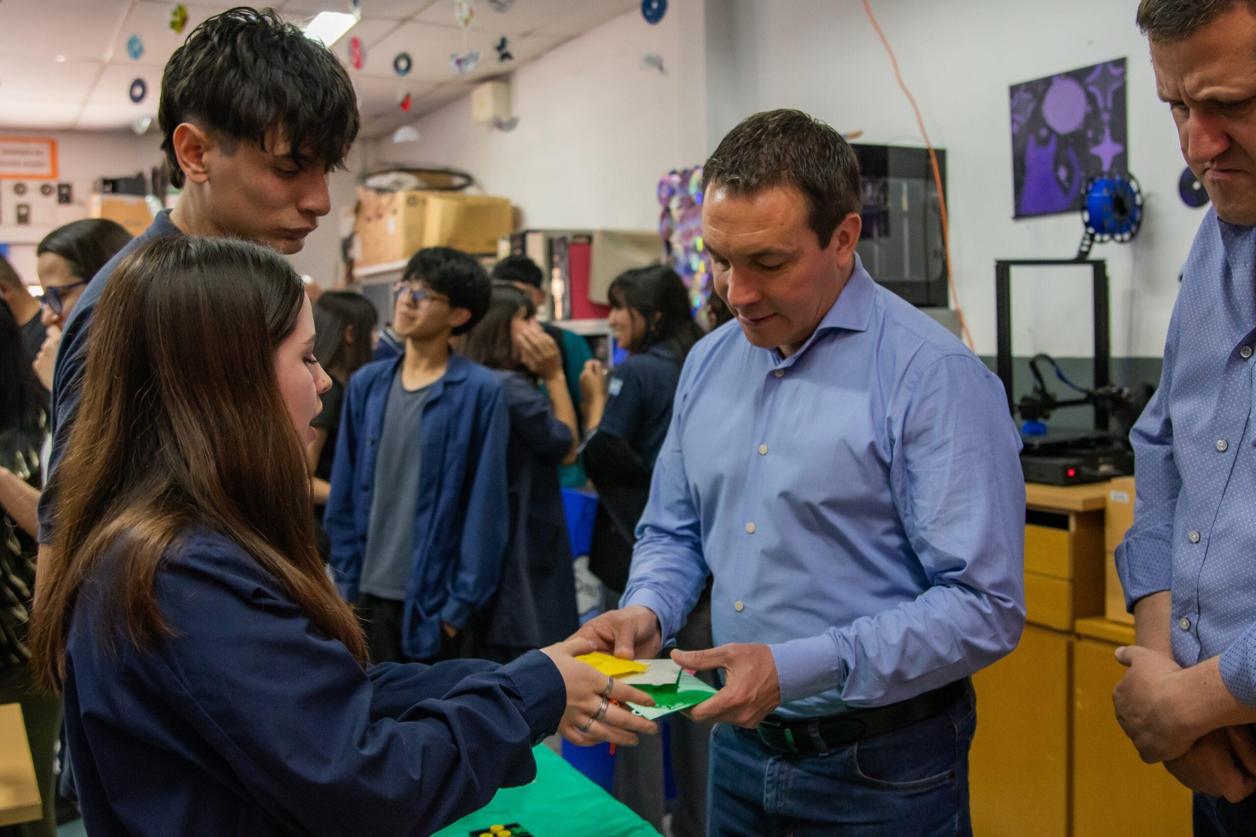 “Nuestra iniciativa tuvo el propósito de ayudar a chicos y a chicas con disminución visual tras donarles impresiones 3D que facilitaron su adaptación al sistema braille”, contó Paula -alumna-. “Tuvimos un lindo intercambio con el Intendente. Fue muy positiva la devolución porque le interesó bastante la temática”, compartió la adolescente oriunda de Villa Vatteone.