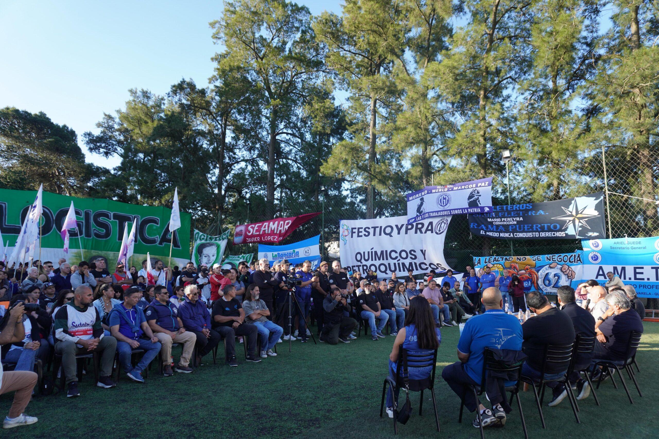 general del SATSAID seccional La Plata, Darío Demichetti; el secretario general de las 62