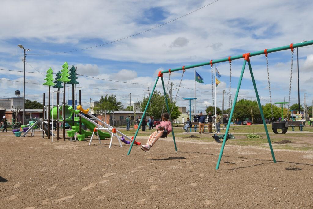 Entre risas, Mía Zorrilla aprovechaba las nuevas atracciones con Liliana Lezcano. Las dos pequeñas utilizaron “las hamacas, los sube y baja, los toboganes”. Invitaron “a los niños y las niñas a venir a la plaza a divertirse, pasarla lindo, ver lo bonita que quedó”.