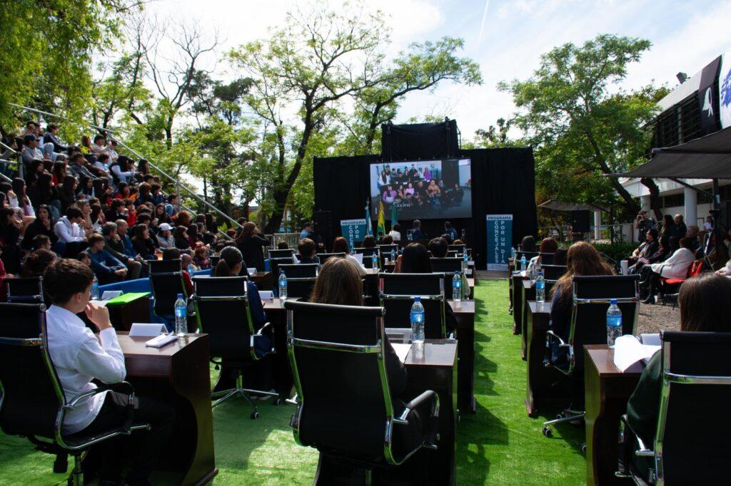 El cierre reunió a más de 400 alumnos de las escuelas participantes, quienes colmaron dos tribunas especialmente montadas para la ocasión. Allí compartieron un acto que fue, a la vez, un espacio de celebración y reflexión sobre la importancia de la participación juvenil.