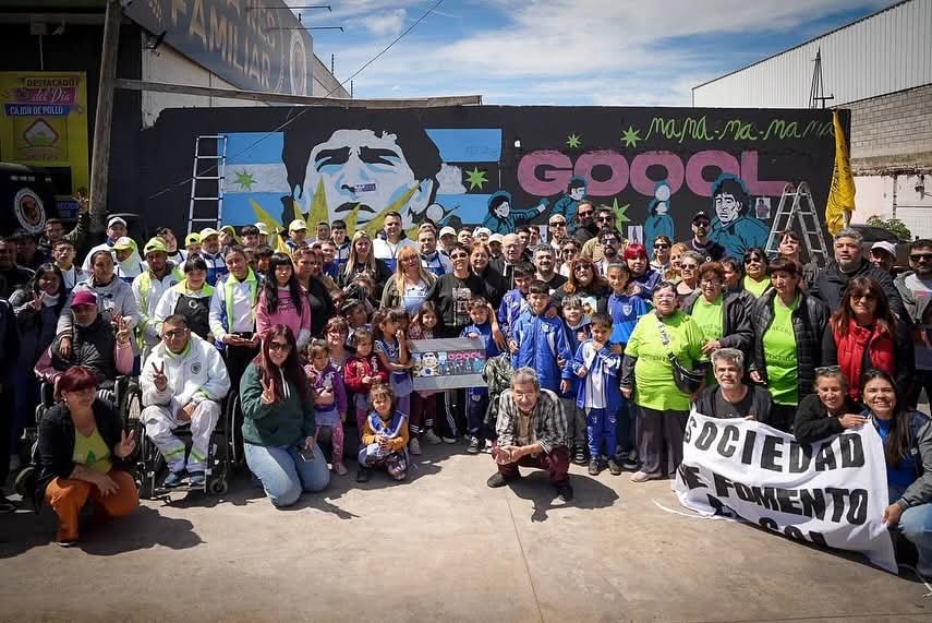 Y aseguró: “Por todo lo que significa Diego Armando Maradona, no solo tenemos hoy este mural y cumplimos con la ley provincial para que todos los vecinos y vecinas conozcan que esta ruta se llama Diego Armando Maradona, sino que también llevamos adelante obra pública, y le ponemos su nombre porque Maradona es, para la Argentina, una esencia”.