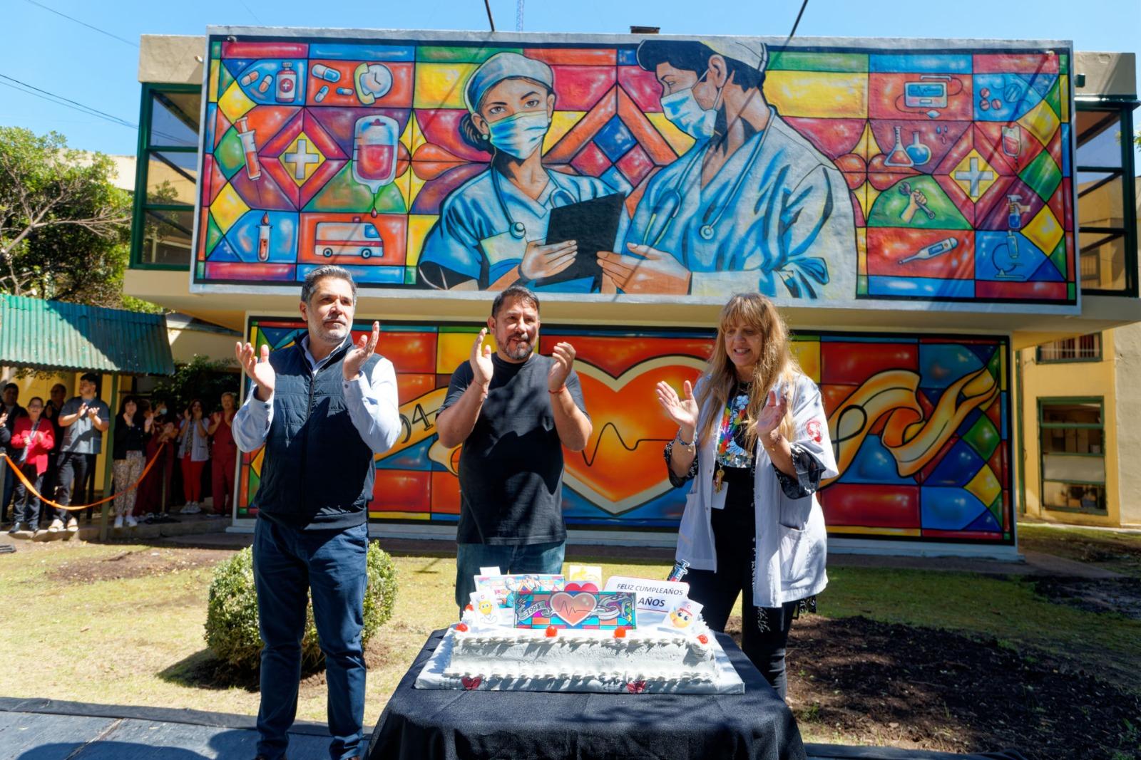 A su vez, la Dra. Zeoli expresó: “Realmente estamos muy emocionados por este homenaje, que es para todos los trabajadores y trabajadoras de este Hospital, por el trabajo que realizan cotidianamente junto a sus pacientes, sus compañeros de trabajo y toda la comunidad. Este es un agradecimiento para todos ustedes, que han vivido muchísimas historias aquí adentro y eso nos conmueve, sobre todo en conmemoraciones como esta. Quiero agradecer profundamente a las autoridades locales y provinciales, por el permanente acompañamiento; y también al artista Germán Díaz, por haber creado ese mural tan hermoso y que tanto nos identifica”.