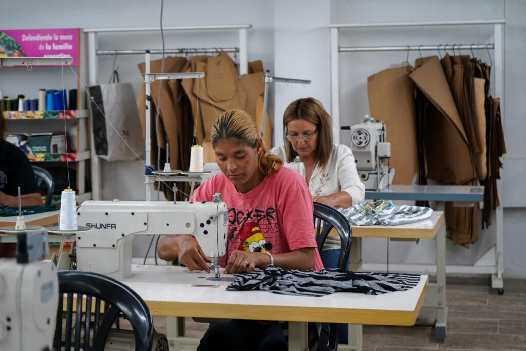 La propuesta para la producción de indumentaria, que inició a mediados de noviembre, conformó un plantel de 14 miembros. Además de fabricar las prendas, las integrantes aprendieron a usar distintas máquinas de costura, elaborar moldes, cortar telas.