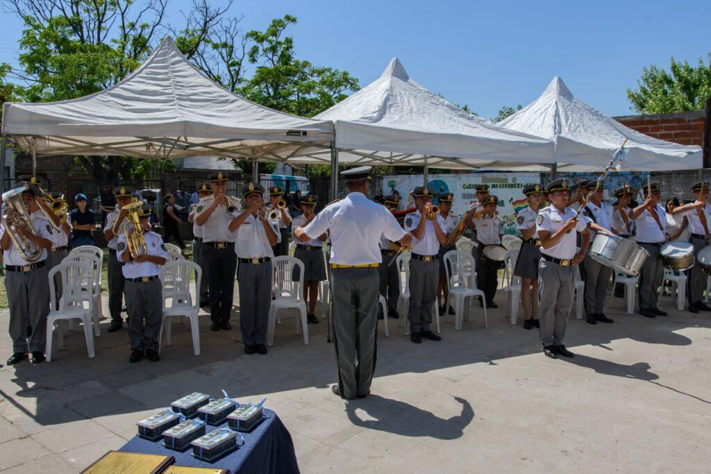 La banda perteneciente a la E.E.S. Nº9001 Liceo Policial «Crío. Gral. Jorge V. Schoo» interpreta el Himno Nacional, Aurora y la Marcha a las Malvinas. El cantautor varelense Kike Leguizamón ameniza el encuentro con un repertorio folklórico.