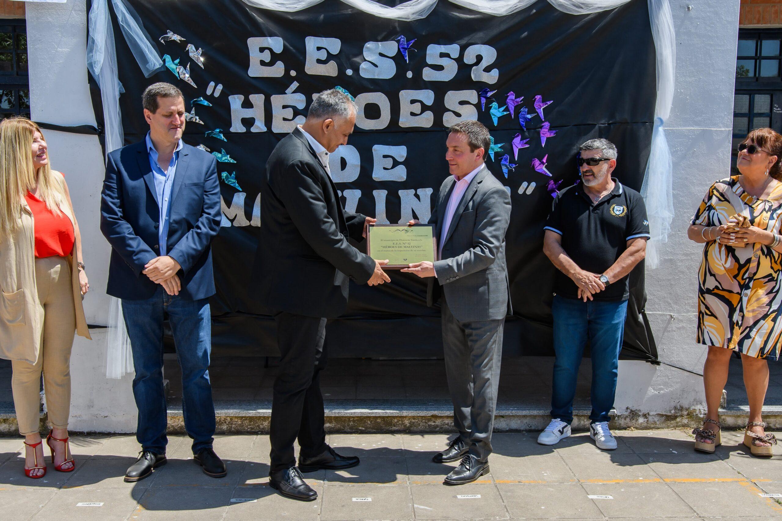 Luego de repasar la historia de la Secundaria, sus protagonistas y el procedimiento para escoger la denominación, su actual responsable -Eugenio García- menciona a Ramón Toledo, quien fallece en 2022, y Ricardo Velázquez, presente en el acto. Ambos enfrentan al Reino Unido en el conflicto bélico del Atlántico Sur. Además, desempeñan funciones en el establecimiento en diferentes etapas.
