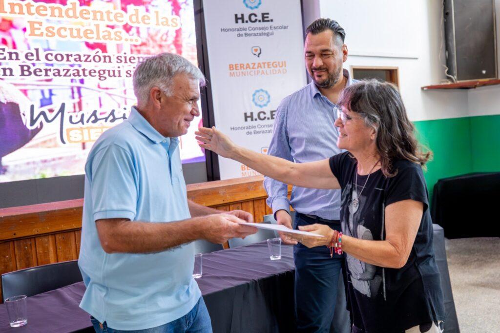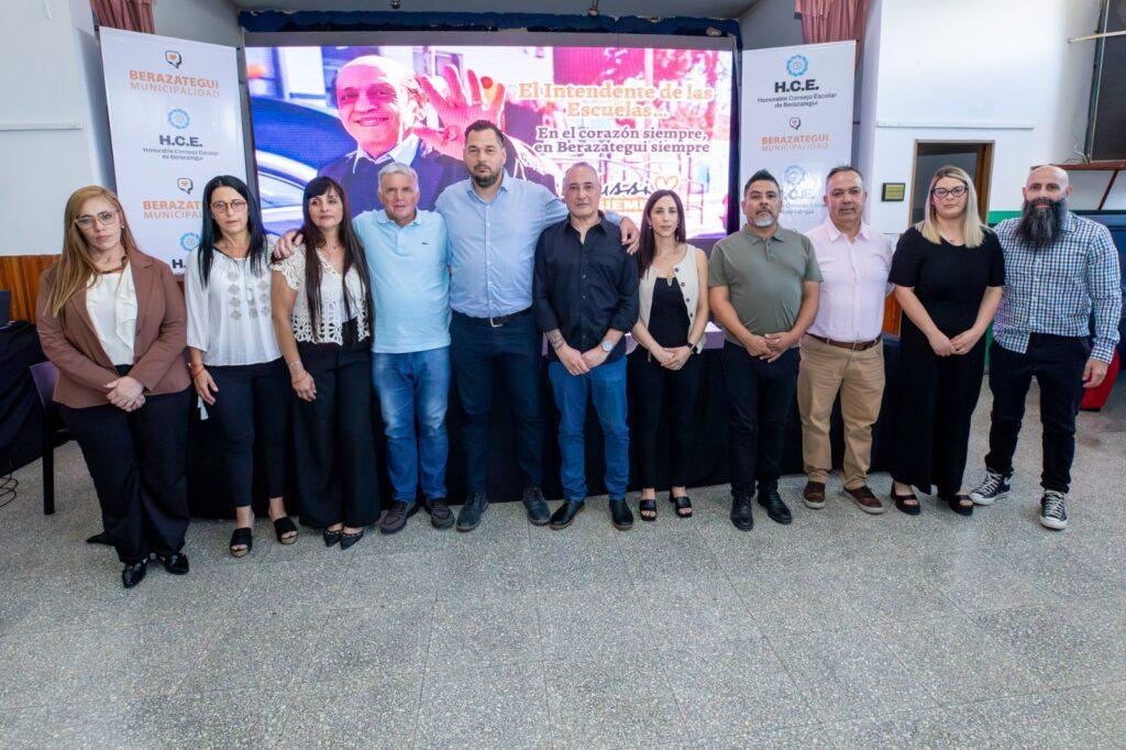 Luego de la reproducción de un video en homenaje al Dr. Juan José Mussi, quien falleció el 24 de noviembre mientras transitaba su sexto mandato como Intendente, el consejero escolar Juan Carlos Soldavini expresó: “Para nosotros, el Dr. Juan José Mussi fue ´el Intendente de las escuelas´ porque estaba todo el tiempo pendiente de lo que pasaba en ellas. Le encantaba ir a los establecimientos educativos, disfrutaba visitarlos para conocer sus necesidades, recorrerlos y compartir tiempo con los estudiantes y los docentes. Él se sentía orgulloso de la educación pública de Berazategui. Por eso, hoy nos pareció una ocasión ideal para homenajearlo por todo eso y mucho más”.