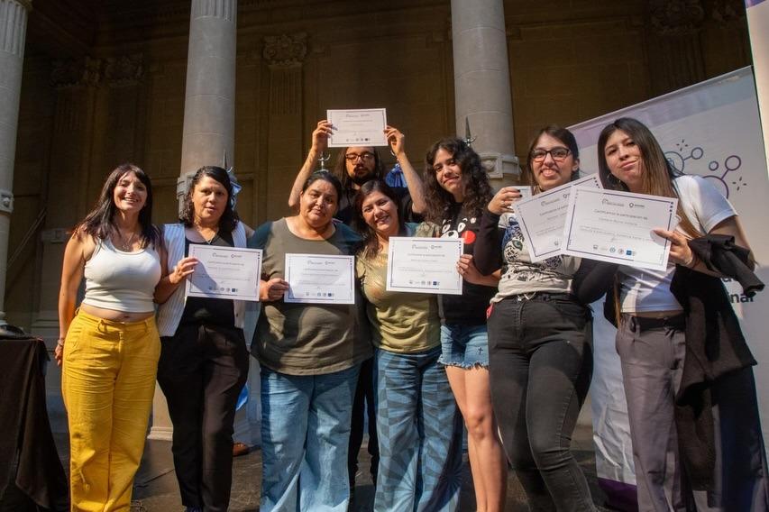 En total, fueron más de 50 los egresados de los cursos que participaron, pertenecientes al Centro de Formación Profesional Nº 405 «Héctor Vassallo» (en las carreras de Diseño Gráfico y Marketing Digital); Centro de Formación Profesional Nº 406 «Isabel Pallamay» (Confeccionista de Lencería y Corsetería, Especialización Profesional en Producción Textil, Depilación y Manicura, y Confeccionista de Bolsos y Mochilas); Centro de Formación Laboral Nº 402 “Fray Luis Beltrán” (Electricista de Inmuebles, Programador Web y Programador Phyton); Centro de Formación Laboral Nº 407 “El Ladrillero” (Serigrafía y Gestor/a Redes Sociales), y Dahua Technology Argentina (Instalación de Sistemas de Cámaras de Seguridad).