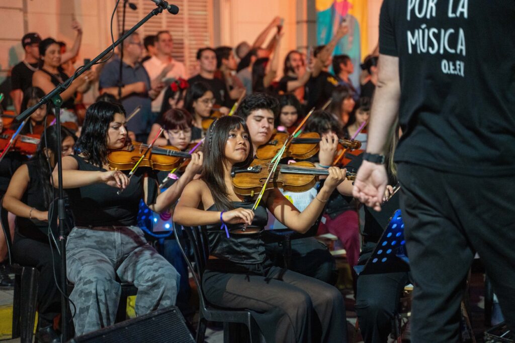 Vecinos y vecinas disfrutaron un show a cargo de la legendaria banda chaqueña junto al ensamble musical del distrito el sábado por la noche en la calle 25 de Mayo, entre Chacabuco y Maipú, frente al edificio municipal.