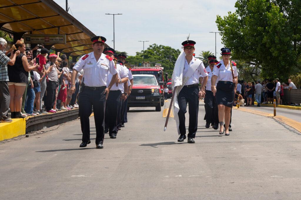 En la jornada, miembros del cuartel local, de Quilmes, San Francisco Solano, La Florida, Berisso, Magdalena, Berazategui, Gutiérrez y Hudson, sumado a la Gendarmería Nacional, Centro de Veteranos de Guerra “Héroes de Malvinas”, Policía Bonaerense, Guardia Comunal, Rotary Club, Defensa Civil marcharon por Av. San Martín ante una multitud de vecinos y vecinas.