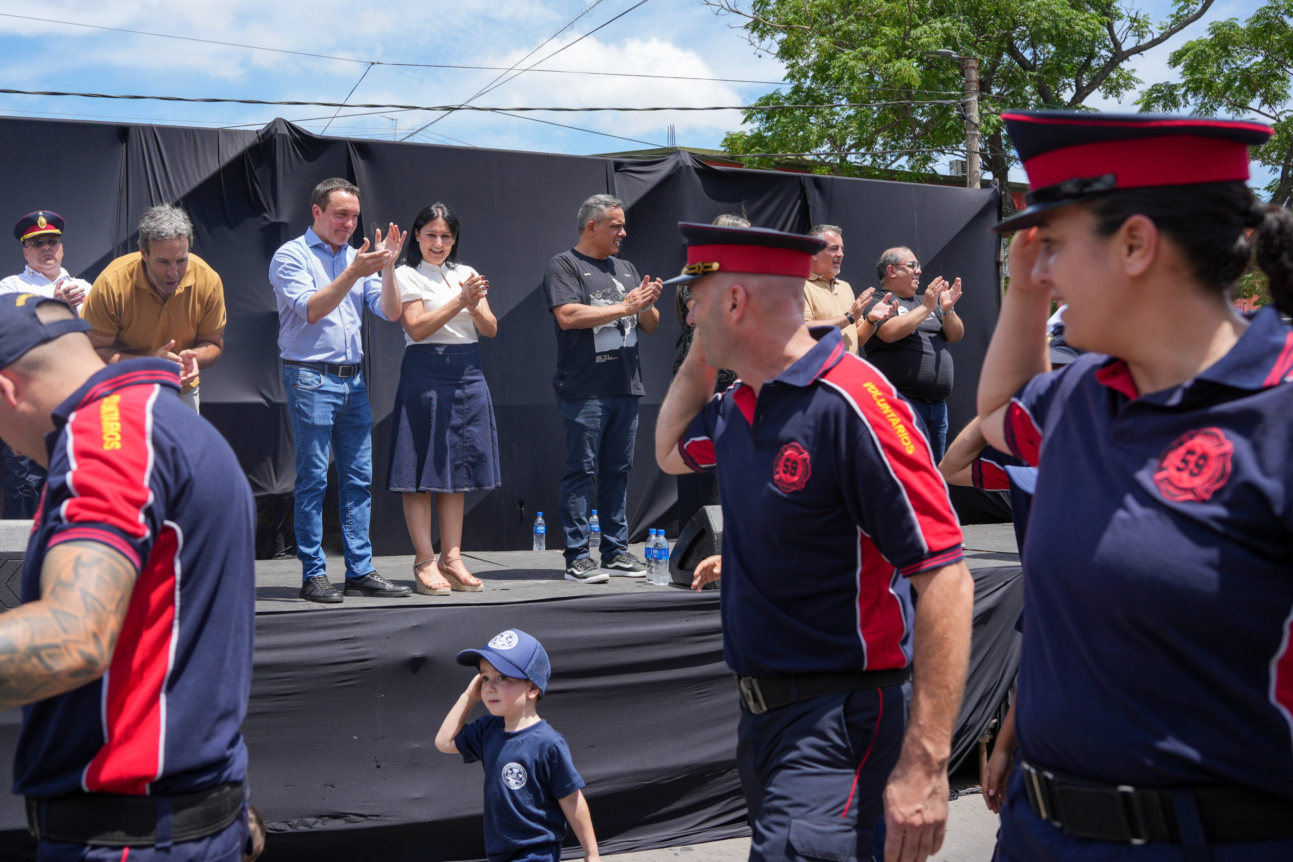 Por otro lado, el Alcalde anunció: “Mediante recursos municipales, otorgamos cuatro vehículos nuevos destinados a fortalecer sus funciones”. Adelantó “la construcción de un destacamento en nuestro parque industrial con el objetivo de prevenir accidentes”.