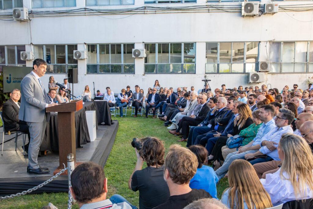 “Hoy se dio el cambio institucional en la UNAJ; en mi caso de reasunción de responsabilidades como Rector de esta Universidad, con un gran acompañamiento de la comunidad universitaria y de la región”, declaró el Dr. Arnaldo Medina. Y destacó: “De Berazategui nos han acompañado secretarios, concejales y consejeros. Por su puesto recordamos al Dr. Juan José Mussi, un gran inspirador, un gran mentor de nuestra Universidad. Trabajamos muchísimo bajo su Intendencia y nos apoya su Gabinete, junto al intendente Carlos Balor. Para nosotros, eso es muy importante porque somos la Universidad Pública de Florencio Varela y de Berazategui. Es el inicio de un nuevo Ciclo, con el desafío de seguir creciendo, cumpliendo con nuestra misión en tiempos de ahogo financiero, donde se hace cada vez más difícil sostener la actividad de la Universidad Pública. Aún así, está firme nuestro compromiso”.