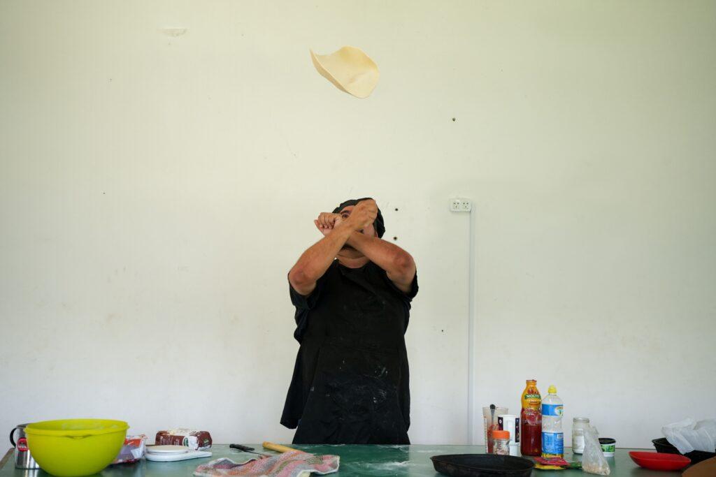 En una intensa clase, el alumnado aprendió el procedimiento desde cero: hacer la mezcla con harina, levadura y agua; dejar reposar el bollo; amasar, estirar; finalizar en el horno a máxima temperatura.