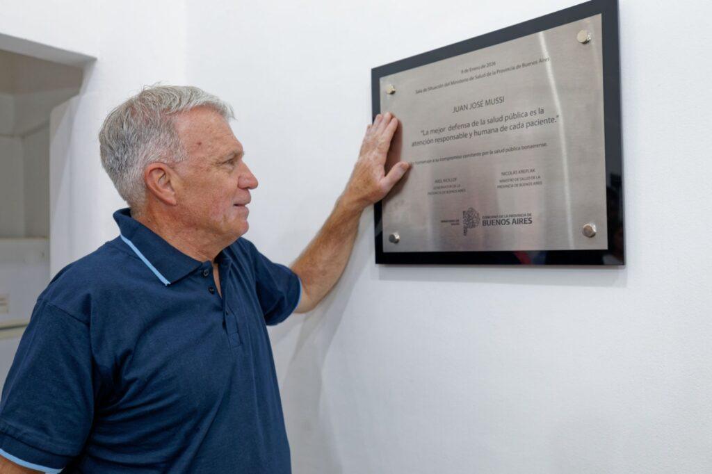 De esta manera, la Sala de Situación del Ministerio pasó a llevar el nombre “Juan José Mussi”. Además, allí se dispusieron una placa con la cita del homenajeado: “La mejor defensa de la salud pública es la atención responsable y humana de cada paciente”; cuadros alusivos con fotografías históricas y el “Poema al Ministerio” (escrito por el Dr. Mussi en 1997).