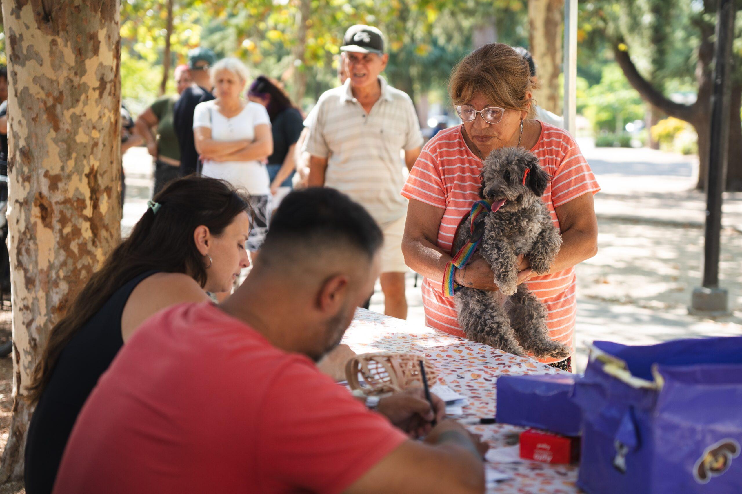 Adriana Casanova caminó hasta el parque con “Bella” y “Mario”. “Con siete perros, era difícil abonar los tratamientos indispensables en su cuidado. Fue muy lindo contar con una propuesta que contemplara a nuestros pequeños amigos de cuatro patas”, compartió la mujer radicada en Villa Argentina.