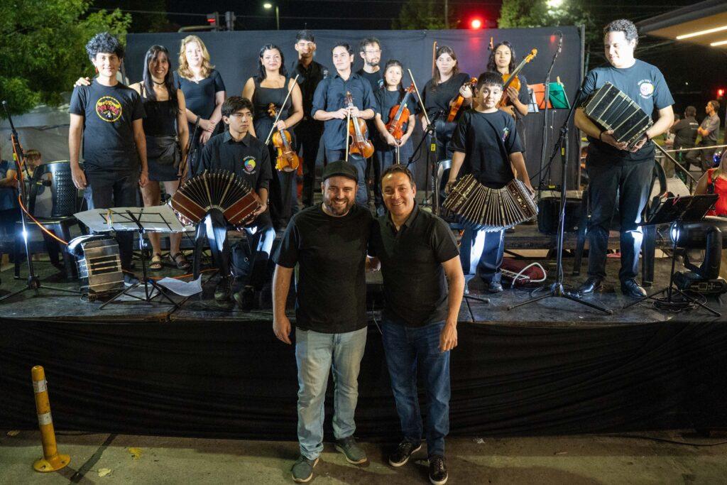 Previo a la actuación del ensamble, el intendente Andrés Watson charló con vecinos y vecinas que aprovechaban las atracciones de cada posta: bailes, foodtrucks, emprendimientos, recreación infantil, entre otras.