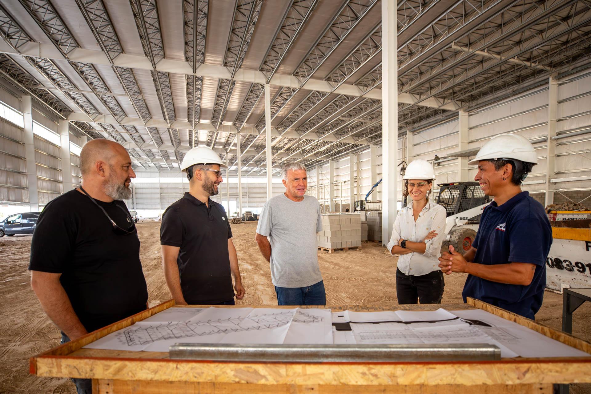 En este nodo industrial de Hansa se desempeñan actualmente más de 20 trabajadores, con la construcción del hormigonado del sector de oficinas, el tendido eléctrico, los muros perimetrales y la carpintería metálica. El proyecto consta de cinco naves (la primera será inaugurada entre marzo y abril de 2026), de 600 a 7.500 metros cuadrados cada uno, con una altura libre de 12 metros.