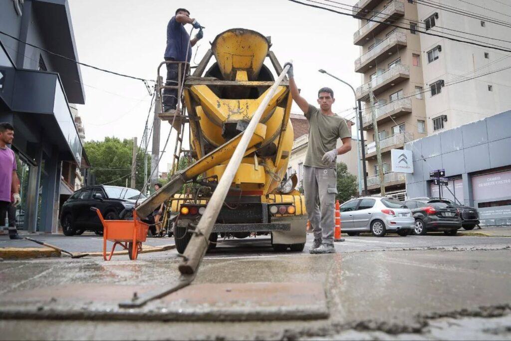 Durante la jornada, cuadrillas de la Secretaría de Servicios Públicos, a cargo de Sebastián García, llevaron adelante el vuelco de hormigón H30 para concretar el arreglo de una losa que se había hundido sobre Yrigoyen, y para esto previamente se estuvieron ejecutando trabajos de rotura y desmonte del hormigón existente más preparación de suelo rasante. Además, se sumaron los trabajos de bacheo en carpeta asfáltica sobre Alberdi entre Yrigoyen y Cevallos. Todo esto llevado adelante con maquinaria y equipo netamente municipal.