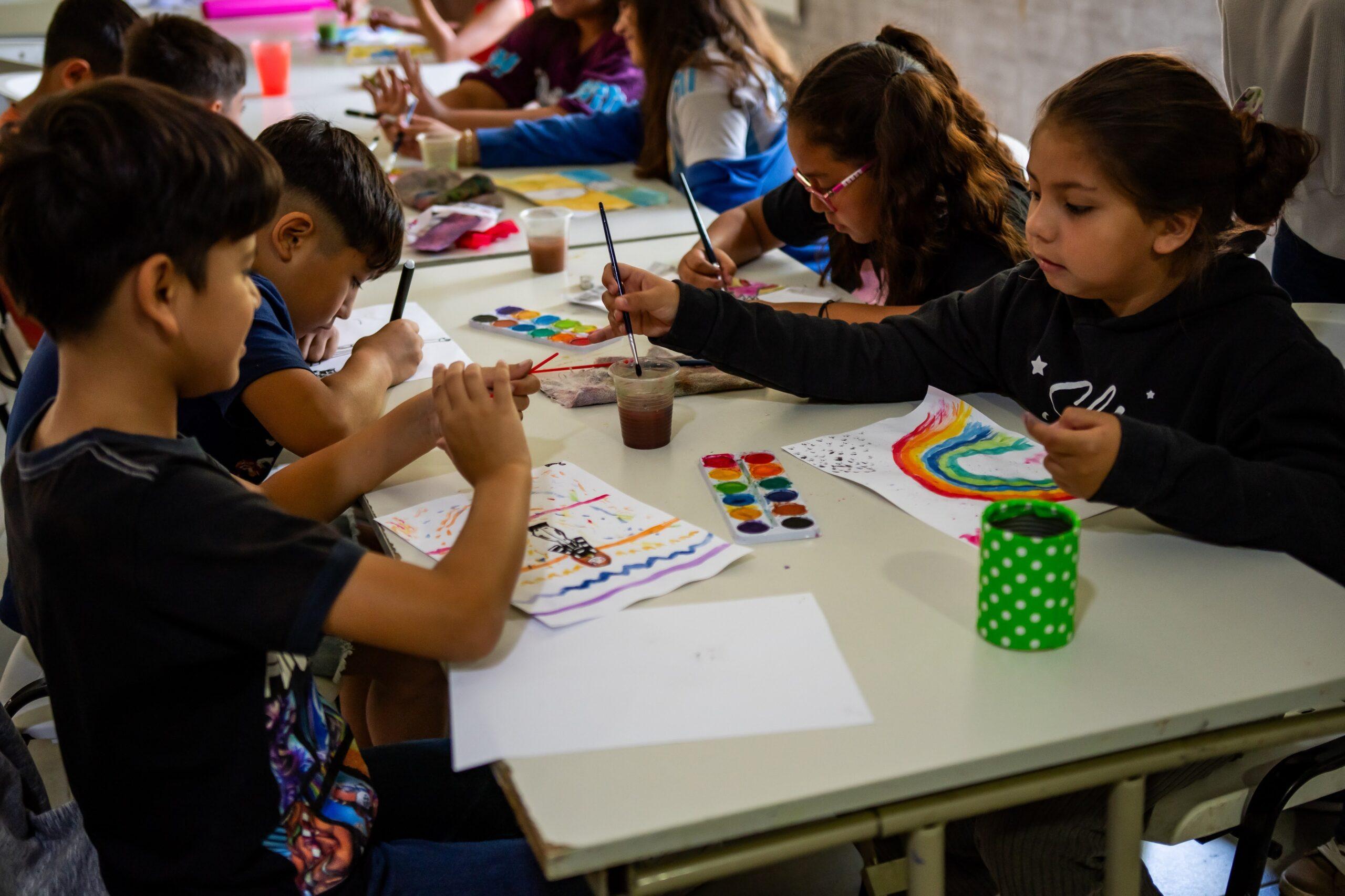 «Después de repasar algunas piezas, las infancias dejaron volar su creatividad y expresaron en sus lienzos retratos animados, de animales, entre otros motivos», comentó la docente de la actividad -Natalia González-. «Al igual que el autor, usaron colores vibrantes y firmaron sus cuadros”, detalló.