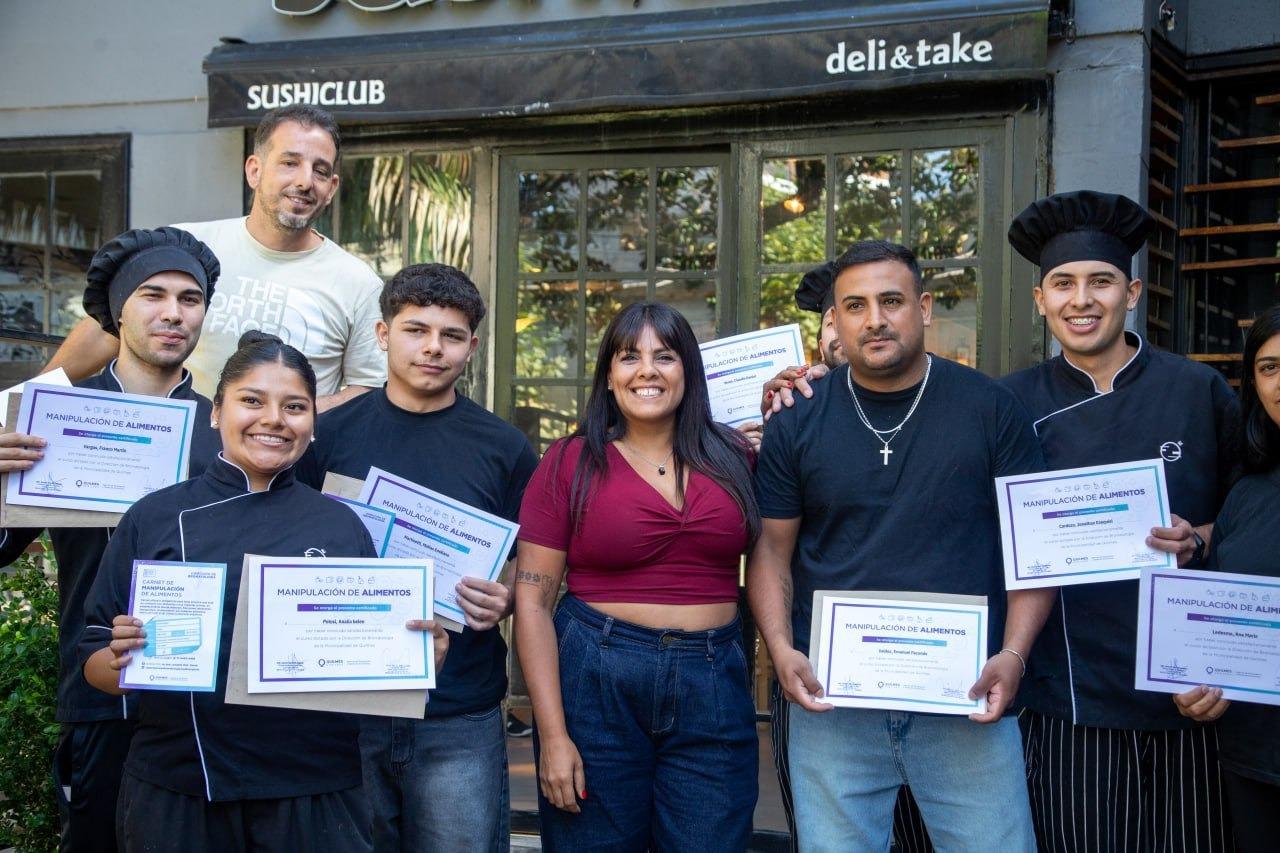 En este contexto, el titular de Sushi Club Quilmes, Federico Palermo, expresó: “Destaco el acercamiento del Municipio y el vínculo que se viene construyendo con los comerciantes desde la gestión, primero con el curso de manipulación de alimentos para nuestro equipo y hoy con la entrega de los carnets y las habilitaciones a colegas de la zona. Es un ida y vuelta muy positivo, que fortalece la relación entre el comercio y el Municipio”. Asimismo, en el marco de la actividad, se realizó la entrega de 15 Carnets de Manipulación de Alimentos a trabajadores y trabajadoras de Sushi Club.