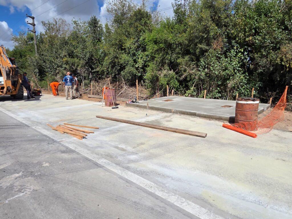 Prosiguieron también los trabajos de demolición, hormigonado de cordones, construcción de dársenas y bases de garitas para transporte público en el ensanche de la Ruta Provincial Nº53. Debido a estas acciones, informaron el desvío de la circulación por la calle 1634.