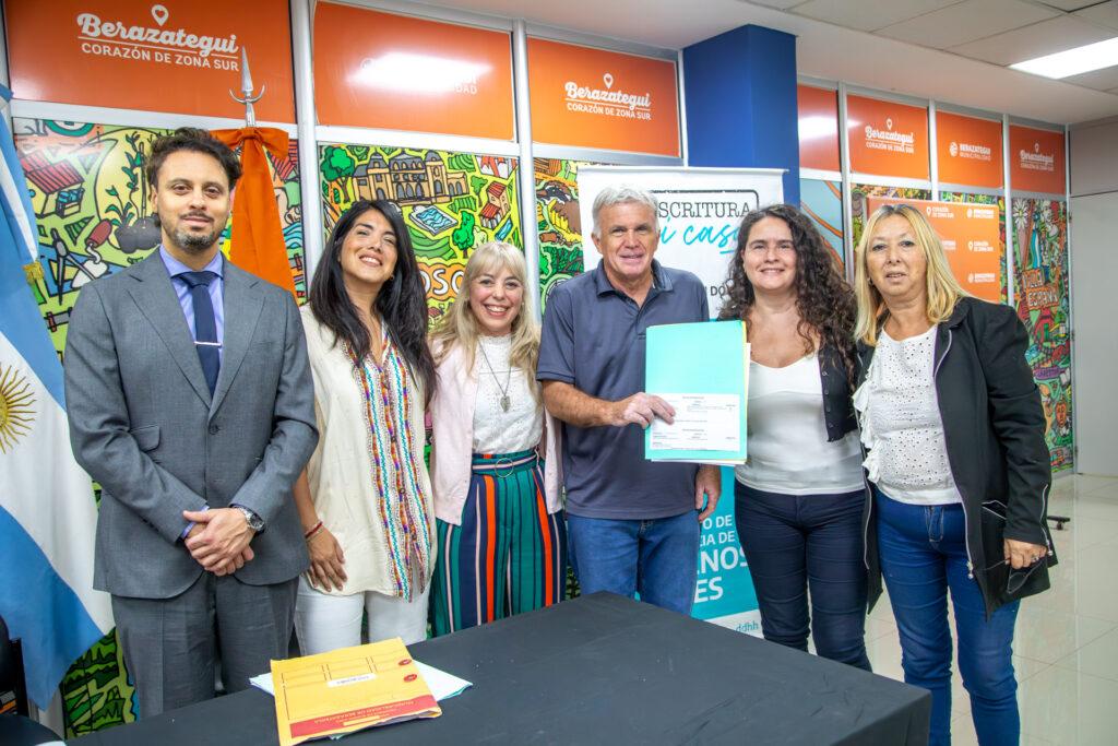 En tanto, la escribana María de los Ángeles Villanueva, de la Escribanía General del Gobierno de la provincia de Buenos Aires, indicó: “Es un gusto que nos reciban una vez más en Berazategui, donde siempre nos tratan muy bien. El Programa Mi Escritura, Mi Casa tiene como objetivo que los bonaerenses obtengan la titularidad de sus viviendas. Felicitaciones, es un día muy lindo para ustedes”.