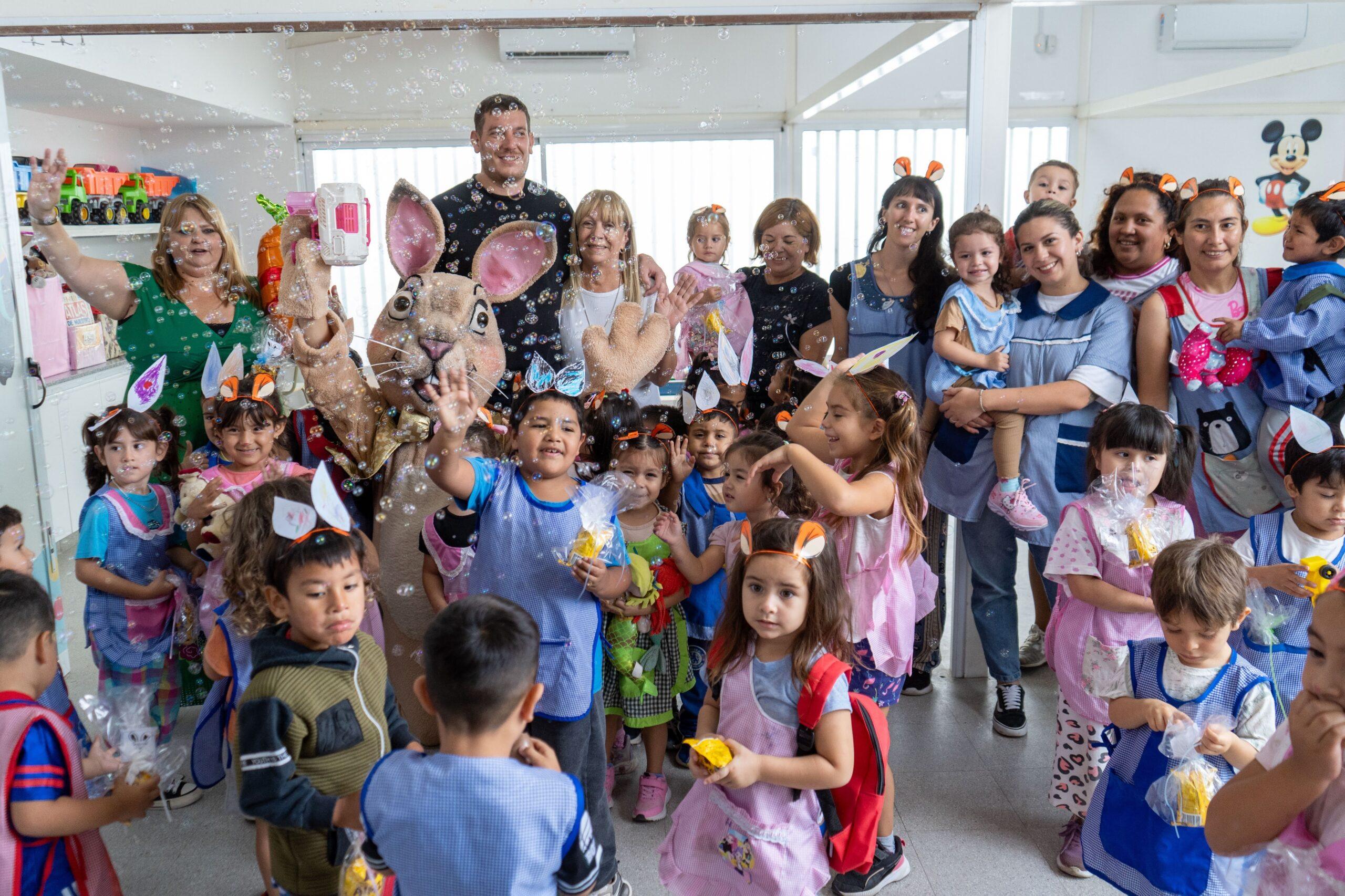 La administración varelense otorgó 1200 mochilas con cartucheras e insumos educativos junto a huevos de chocolate por Pascua en el establecimiento ubicado en calle 1268 esquina Grierson -El Parque- durante la mañana del miércoles.