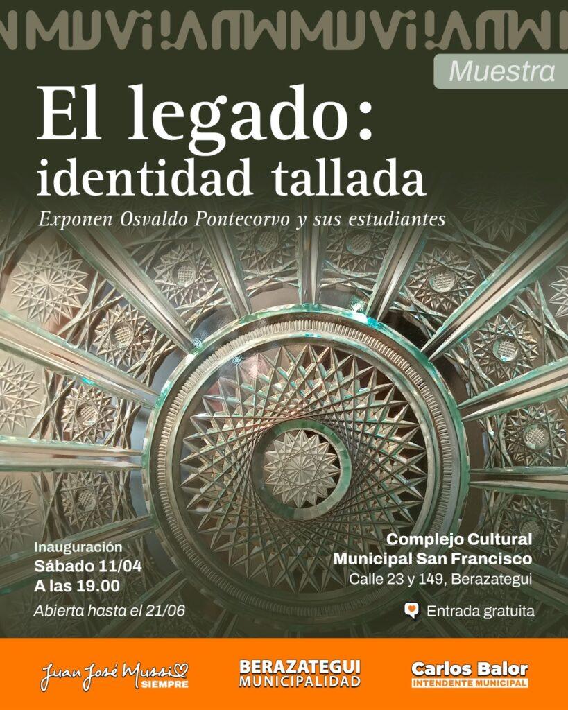 Este sábado 11 de abril, a las 19.00, se inaugurará la muestra “El legado. Identidad tallada”, del reconocido artista en tallado Osvaldo Pontecorvo. La exposición, que también incluirá obras de sus estudiantes del Instituto Cultural de la provincia de Buenos Aires, se realizará en el Museo Municipal del Vidrio (MUVI), ubicado en calle 23 y 149, con entrada libre y gratuita.