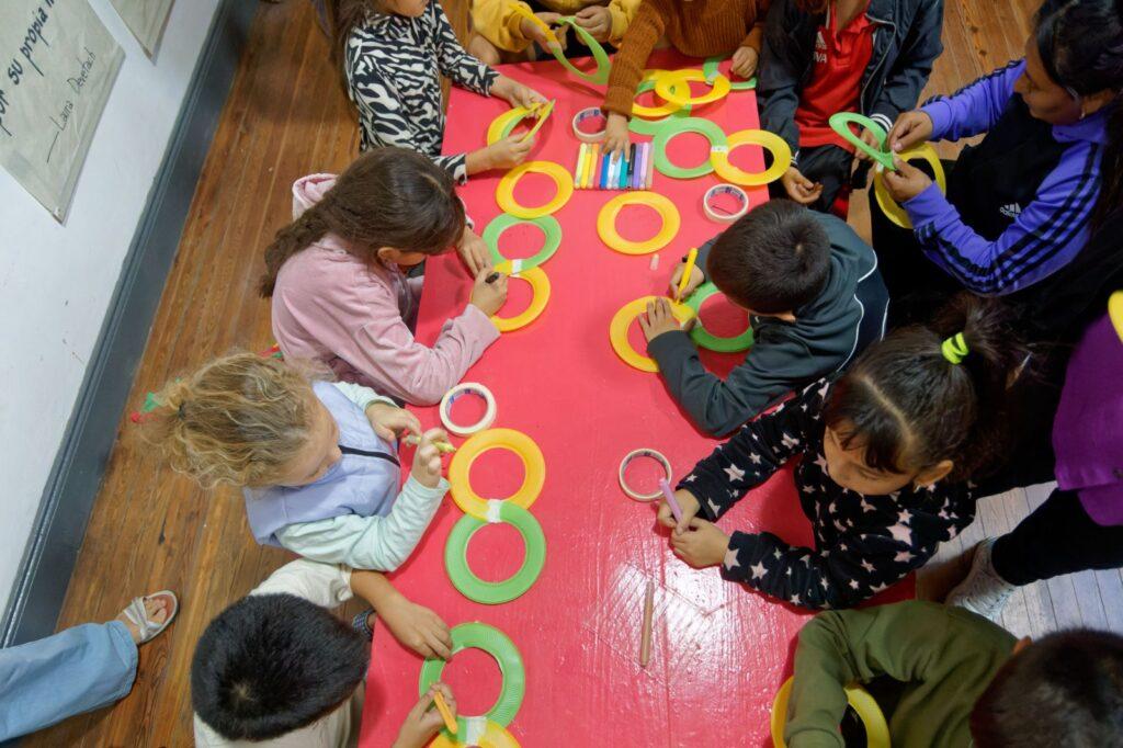 “El taller estuvo repleto de niños y niñas. Estuvimos fabricando un juguete: una hélice que gira con el viento cuando uno camina y corre. Están invitados a venir con sus familias; todas las semanas cambian las propuestas para que siempre puedan venir y disfrutar de cosas nuevas”, afirmó Julio Calvo, quien brindó el Taller Máquinas inútiles.