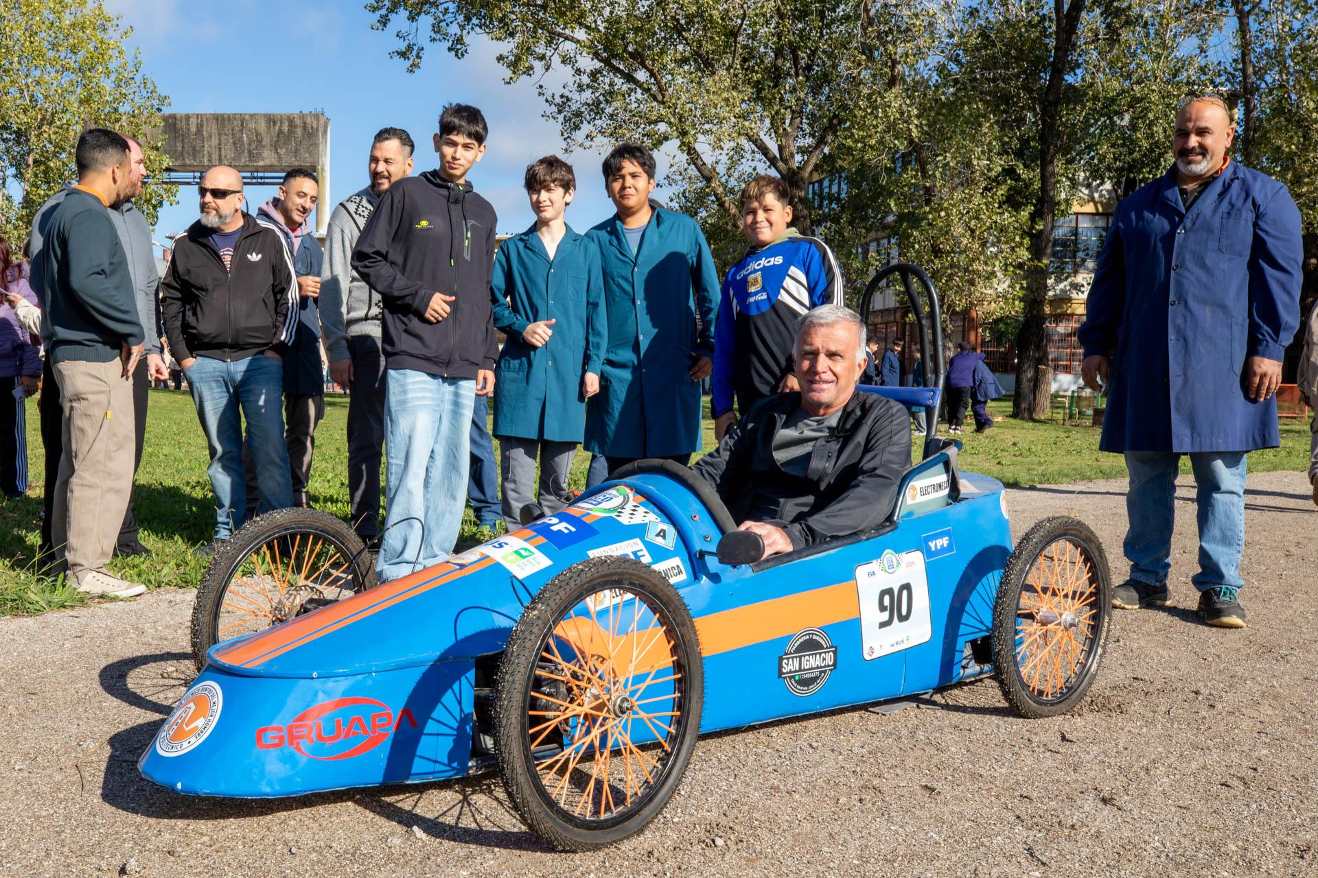 Durante una visita a la Escuela Secundaria Técnica N° 3 de Berazategui, el intendente Carlos Balor se subió a uno de los autos eléctricos diseñados y construidos por sus estudiantes, en una demostración del trabajo técnico y de innovación impulsado por este emblemático establecimiento educativo público local.