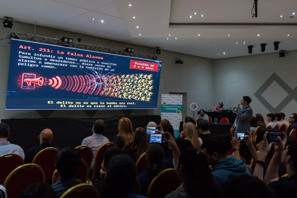 El intendente Andrés Watson inició las disertaciones con “un agradecimiento a la Justicia, personificado en algunos de sus representantes, para acercarles a los chicos y las chicas los instrumentos indispensables para analizar un tema en boga: los retos en las redes sociales”.