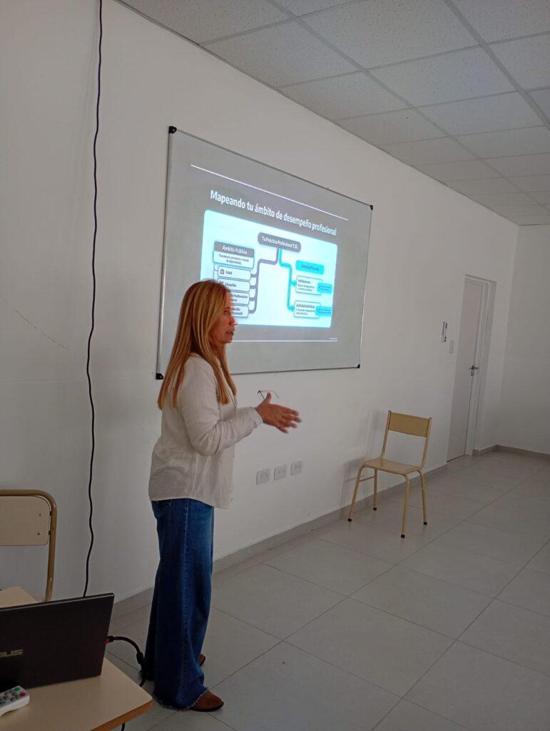 Como parte de la agenda en Bahía Blanca, la presidenta del COTOBA también participó de una charla dirigida a graduados y profesionales de la Licenciatura en Terapia Ocupacional en la sede local de UCALP, donde se trabajaron temas centrales para el desarrollo de la profesión. y estudiantes de los últimos años de la carrera Licenciatura en Terapia Ocupacional que se dicta allí.