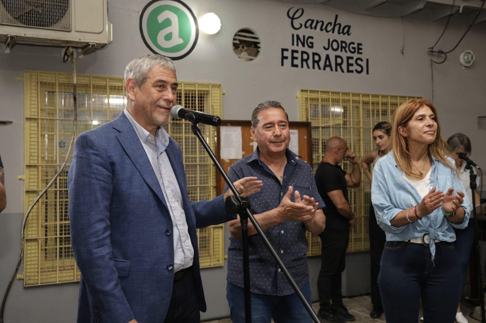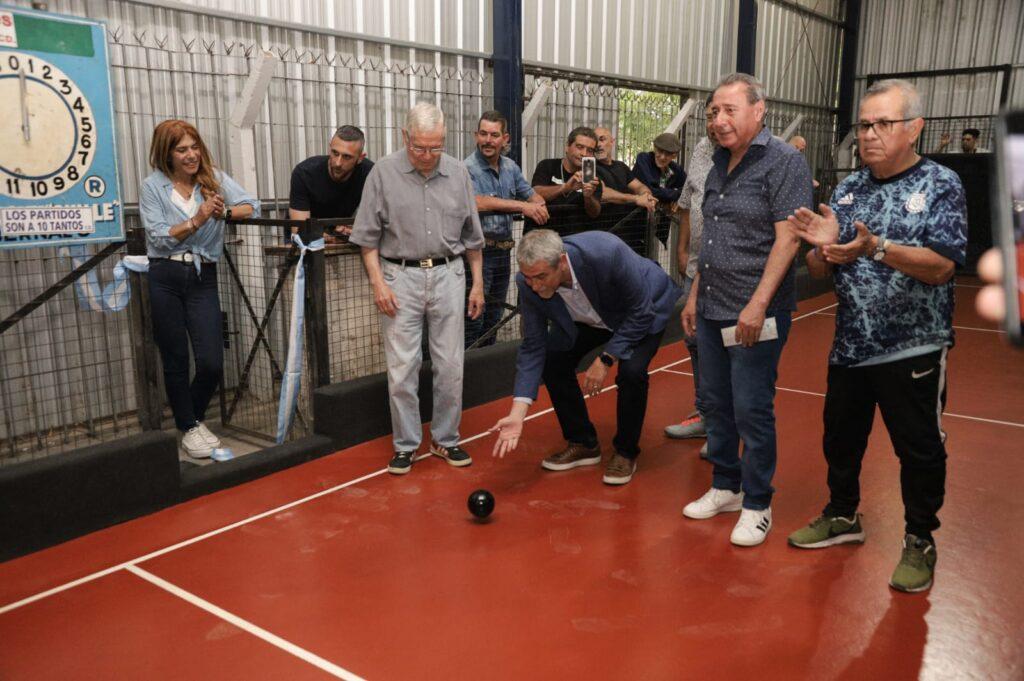 El intendente de Avellaneda Jorge Ferraresi junto con la jefa de Gabinete Magdalena Sierra y las autoridades del centro de jubilados de Wilde, realizaron el corte de cinta e inauguraron la cancha de piso sintético con un primer lanzamiento de bocha.