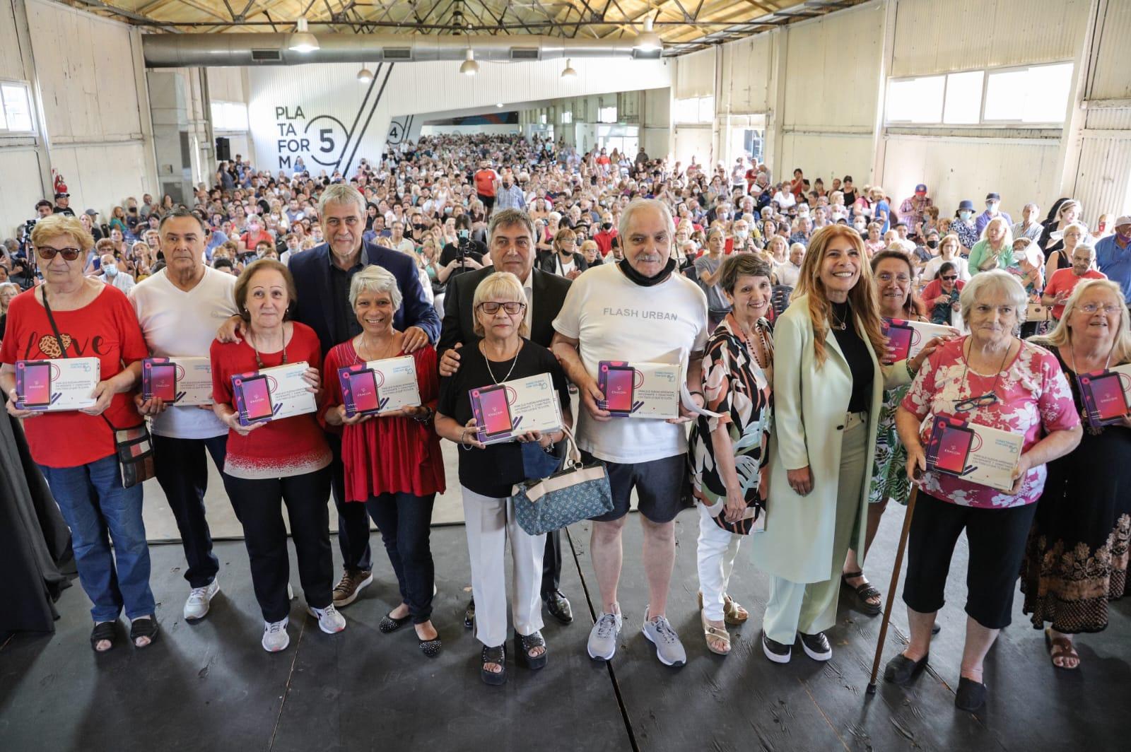 El intendente de Avellaneda, Jorge Ferraresi y la jefa de Gabinete, Magdalena Sierra encabezaron junto al presidente del Ente Nacional de Comunicaciones (ENACOM), Claudio Ambrosini, la entrega de 1500 tablets a adultos mayores de la ciudad.