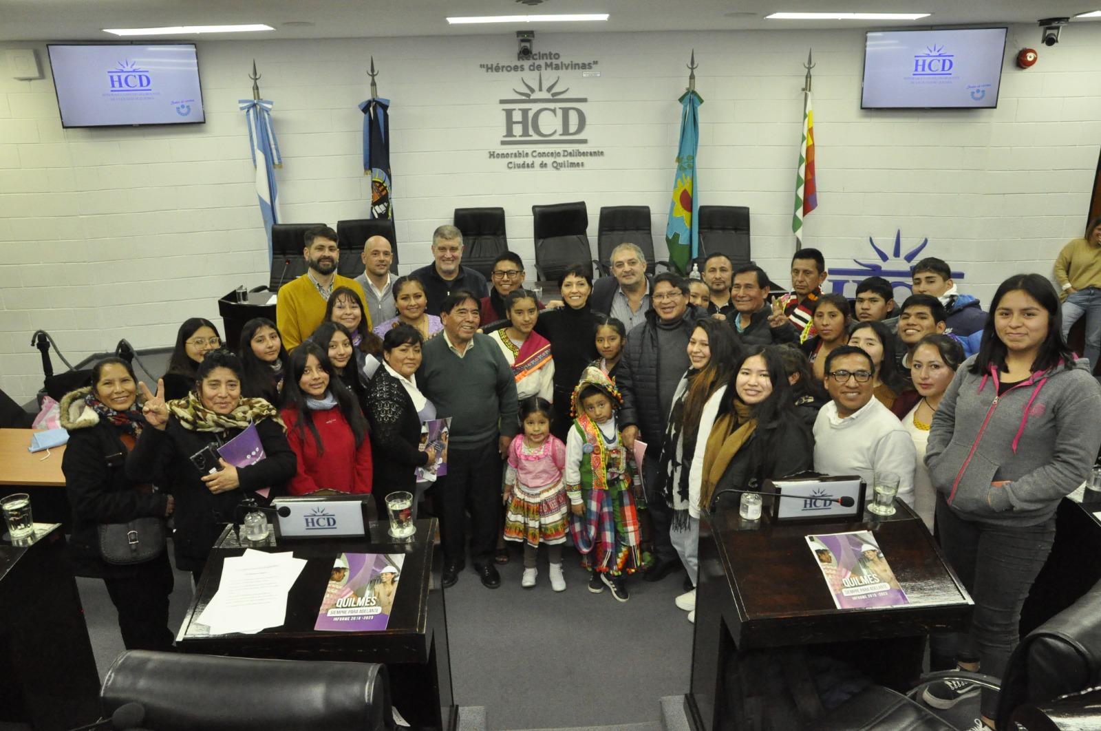 El presidente del Honorable Concejo Deliberante Fabio Baez, recibió a miembros de la comunidad boliviana nucleados en ACIBO Quilmes (Asociación Civil de Integración Boliviana) quienes participaron del Programa «Concejales por un Día», al que se sumó la Intendenta Municipal Mayra Mendoza.
